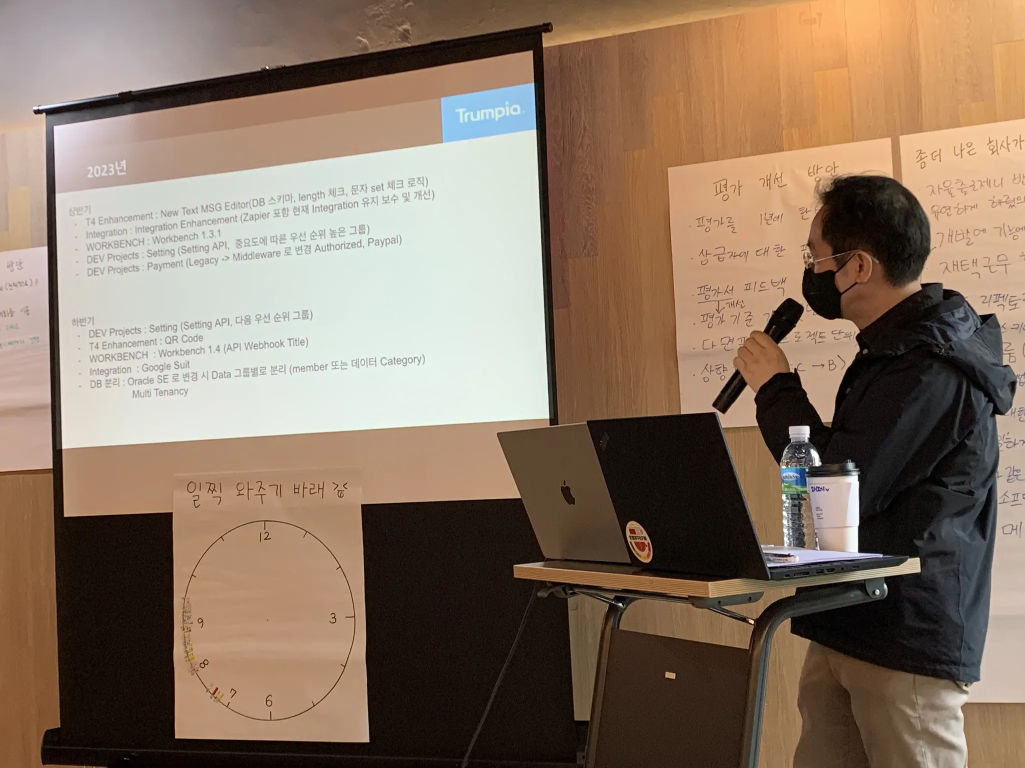모두가 한 마음 한 뜻으로 열심히 참여해주셔서 아주 다양한 의견을 수집할 수 있었습니다. CTO님께서는 해당 의견들을 워크샵에서만 일회적으로 청취하는 것이 아니라, 추후 실효성 있는 방향으로 나아갈 수 있도록 노력하실 것임을 약속하셨답니다.
