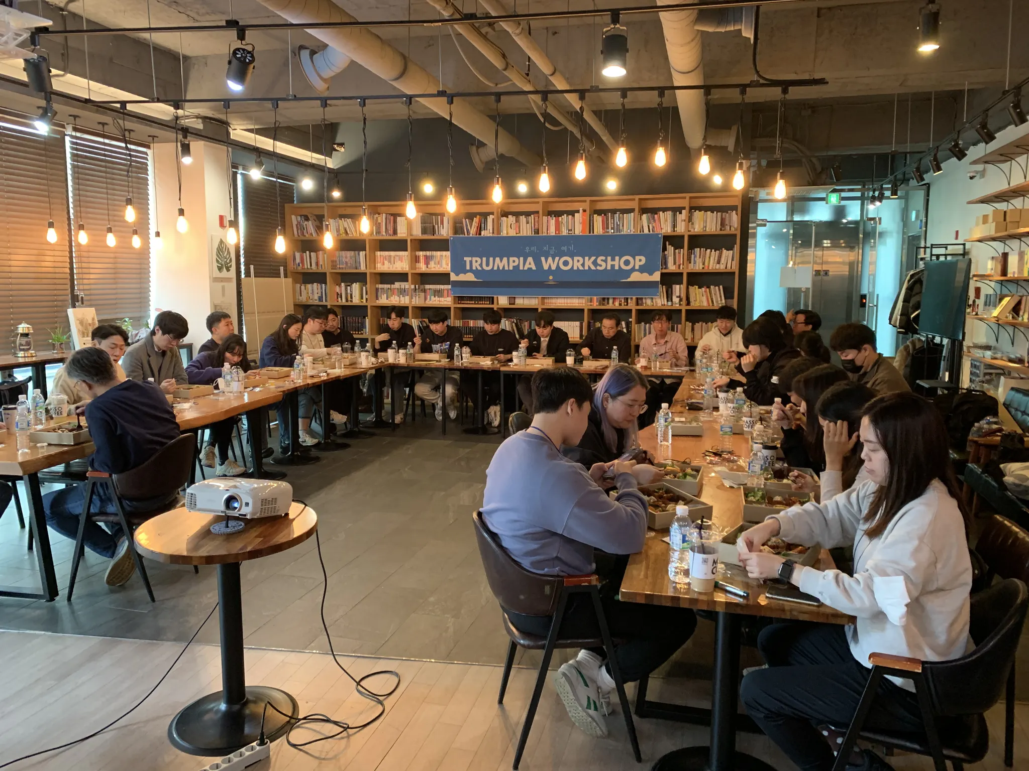 모두들 열심히 참여했지만, 조금은 무겁고 진중했던 토론 시간 이후 배고픈 트럼피아 직원들을 위해 배달된 오늘의 점심 도시락! 모두들 풀어진 분위기에서 맛있게 먹고 다음 일정을 준비하며 휴식을 취했는데요.